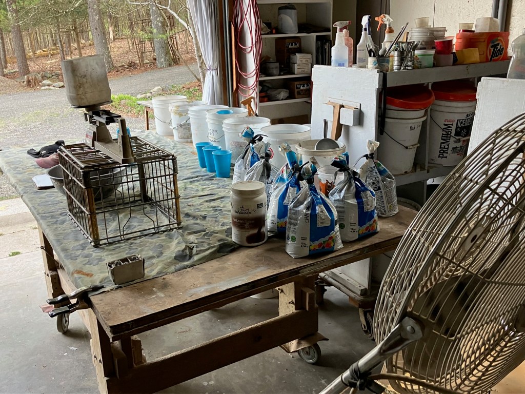 Next step is to select and blend the sizes of the various colored marble aggregates. These are placed into pails as well.